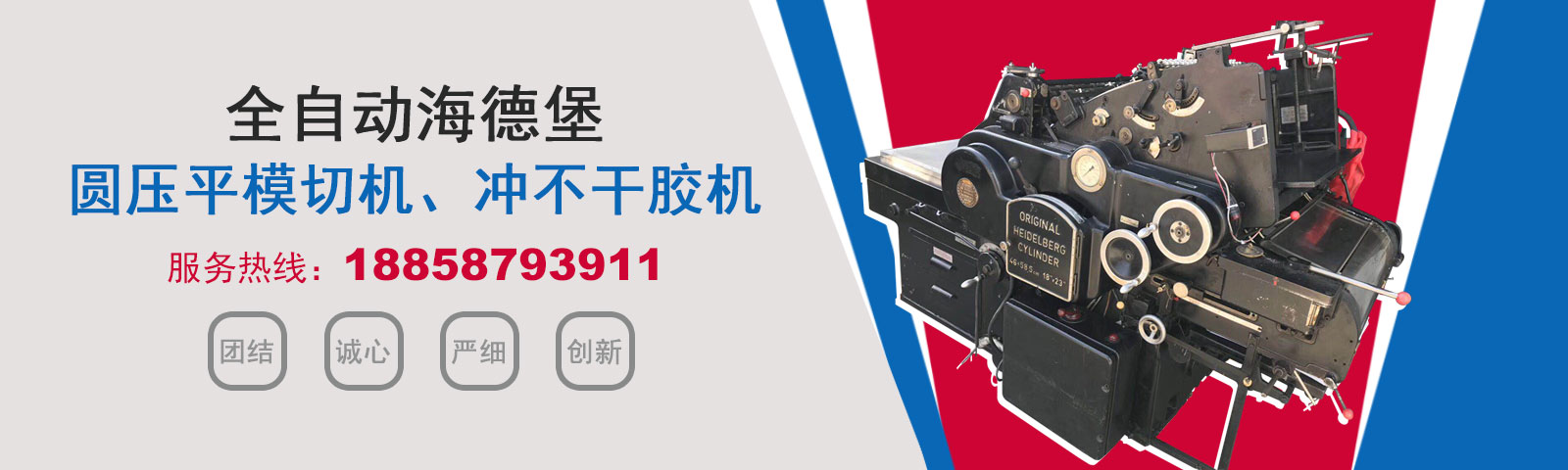 瑞安市恒柯機械廠(www.wzhkjx_com.71u61.cn)是國內專業制造銷售全自動模切機,全自動燙金機,圓壓平模切機,圓壓平燙金機,滾筒燙金機,沖不干膠機,海德堡凸印機.銷售的產品系列規(guī)格齊全,產品具有速度快,壓力均勻,套印準確等特點。